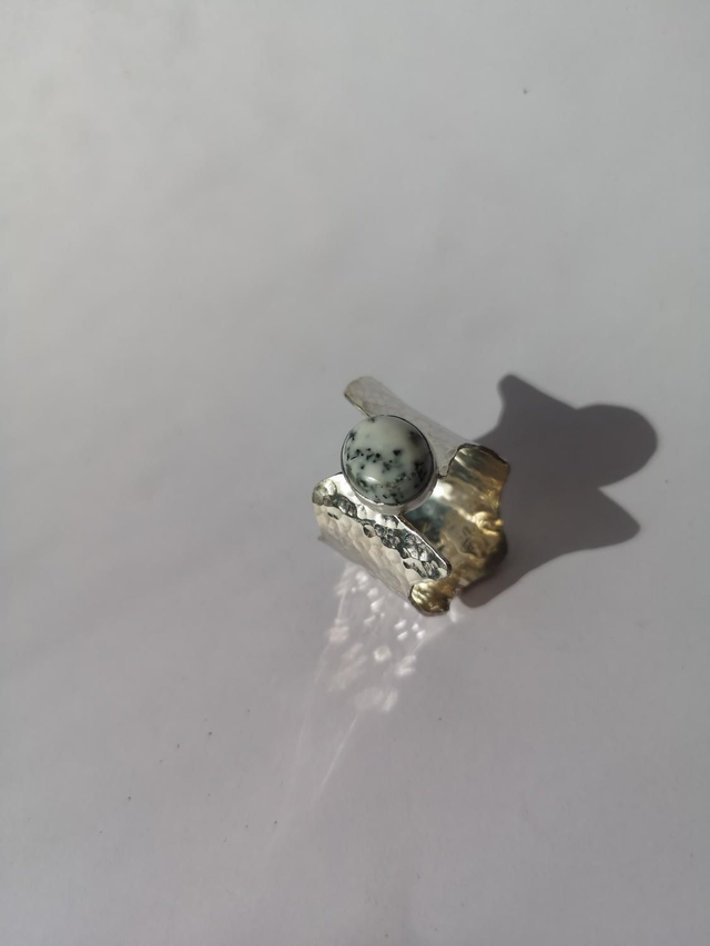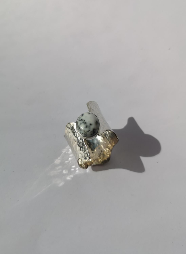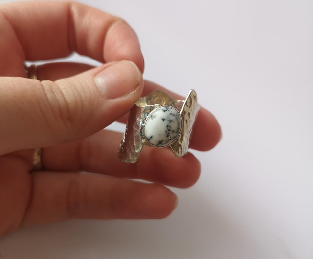 Chunky Sterling Silver Ring with Dendrite