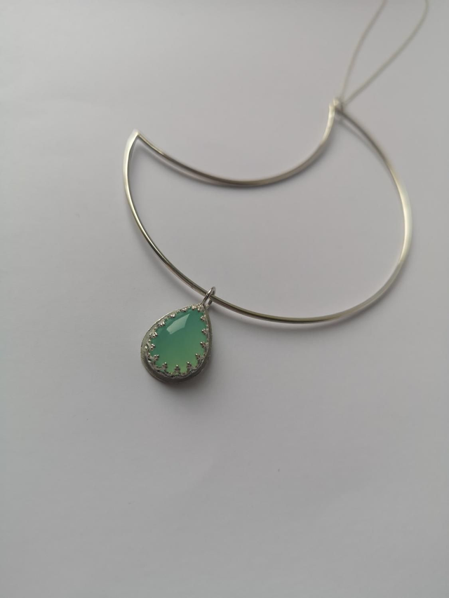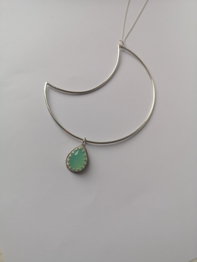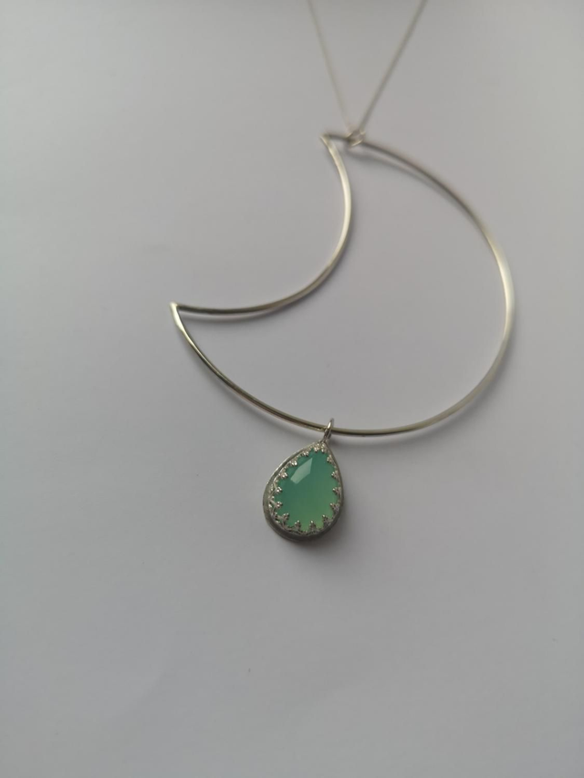 Plain Moon Necklace with a gorgeous Aqua Chalcedony Stonesetting.