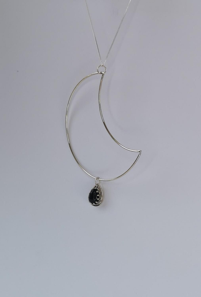 Plain Moon Necklace with a gorgeous Black Onyx Stonesetting.