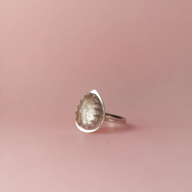 Natural Gold Rutile Quartz Ring