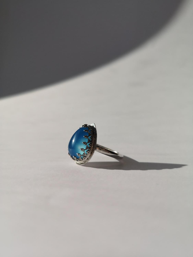 Patterned Blue Chalcedony Sterling Silver Ring - Size Q 1/2