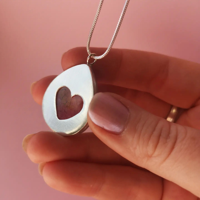 Gorgeous Rainbow Quartz Pendant with cut out heart detail.